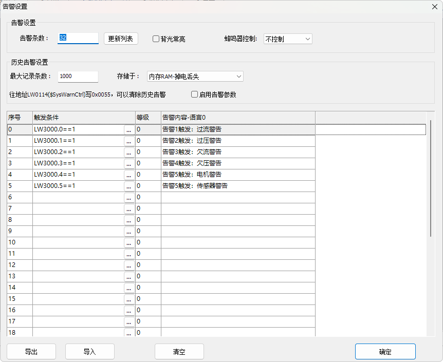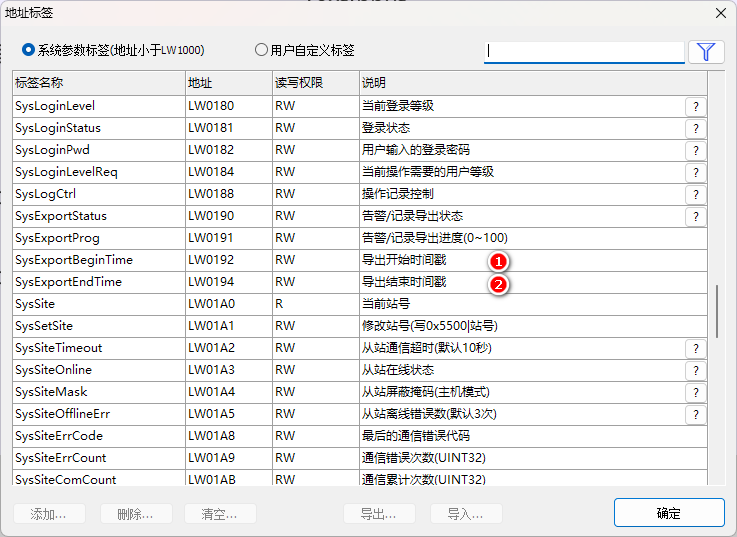 set_uint16(VT_LW, 0x0114, 1) --告警记录导出