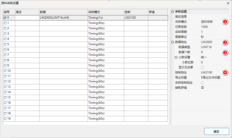 | 字设置按钮 | LW104A→设置1 | 将数据记录导出 |